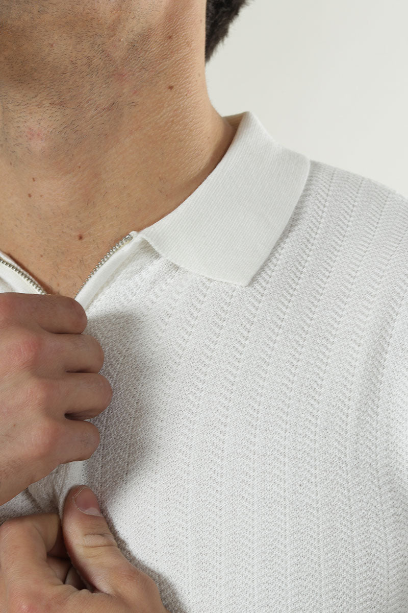 Cran SS Structure Half Zip Knit Polo Egret