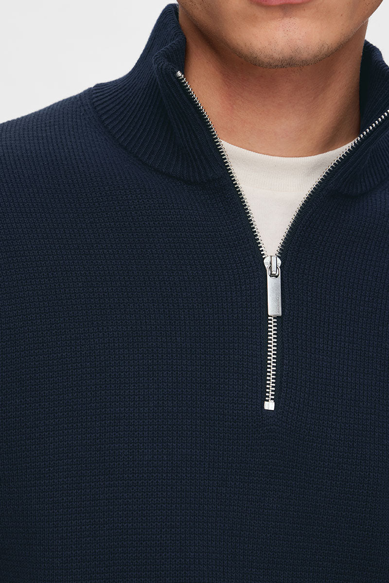 Selected Dane LS Structure Knit Half Zip Sky Captain