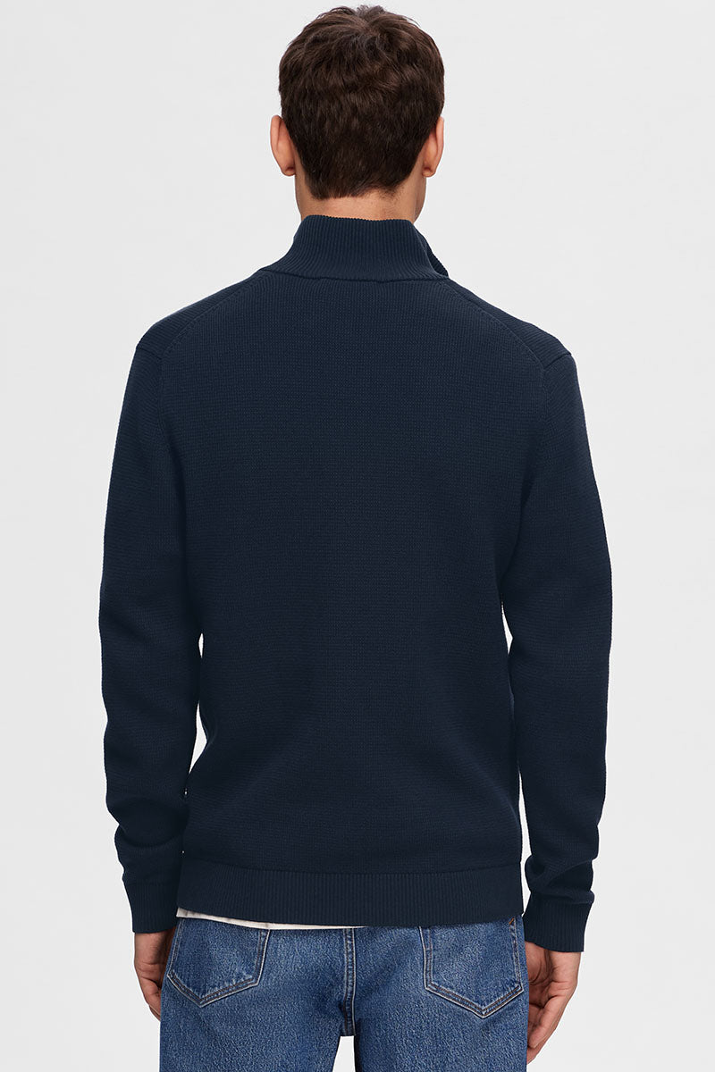 Selected Dane LS Structure Knit Kalf Zip Deep Forest