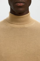 Selected Tray LS Merino Knit Roll Neck Oatmeal