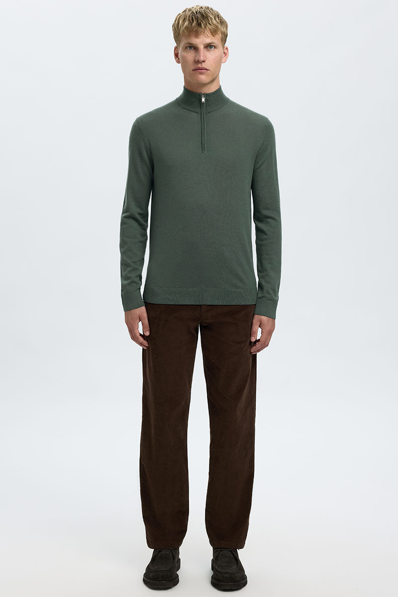 Selected Tray LS Merino Knit Half Zip Kelp