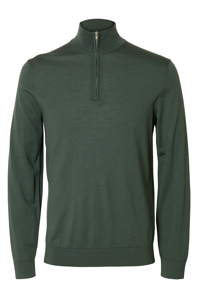 Selected Tray LS Merino Knit Half Zip Deep Forest