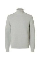 Selected Dane LS Structure Knit Roll Neck Light Grey Melange