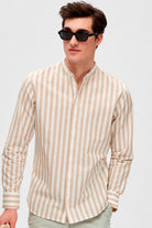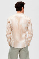Selected SLHSLIMNEW-LINEN SHIRT LS BAND W Desert Sage Stripes