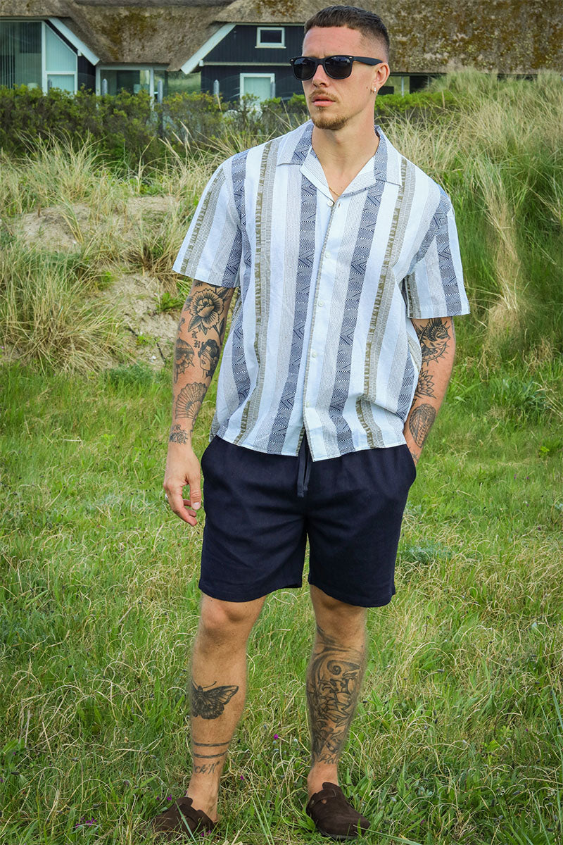 Selected Relax New Linen Shirt SS Resort Sky Captain Stripe