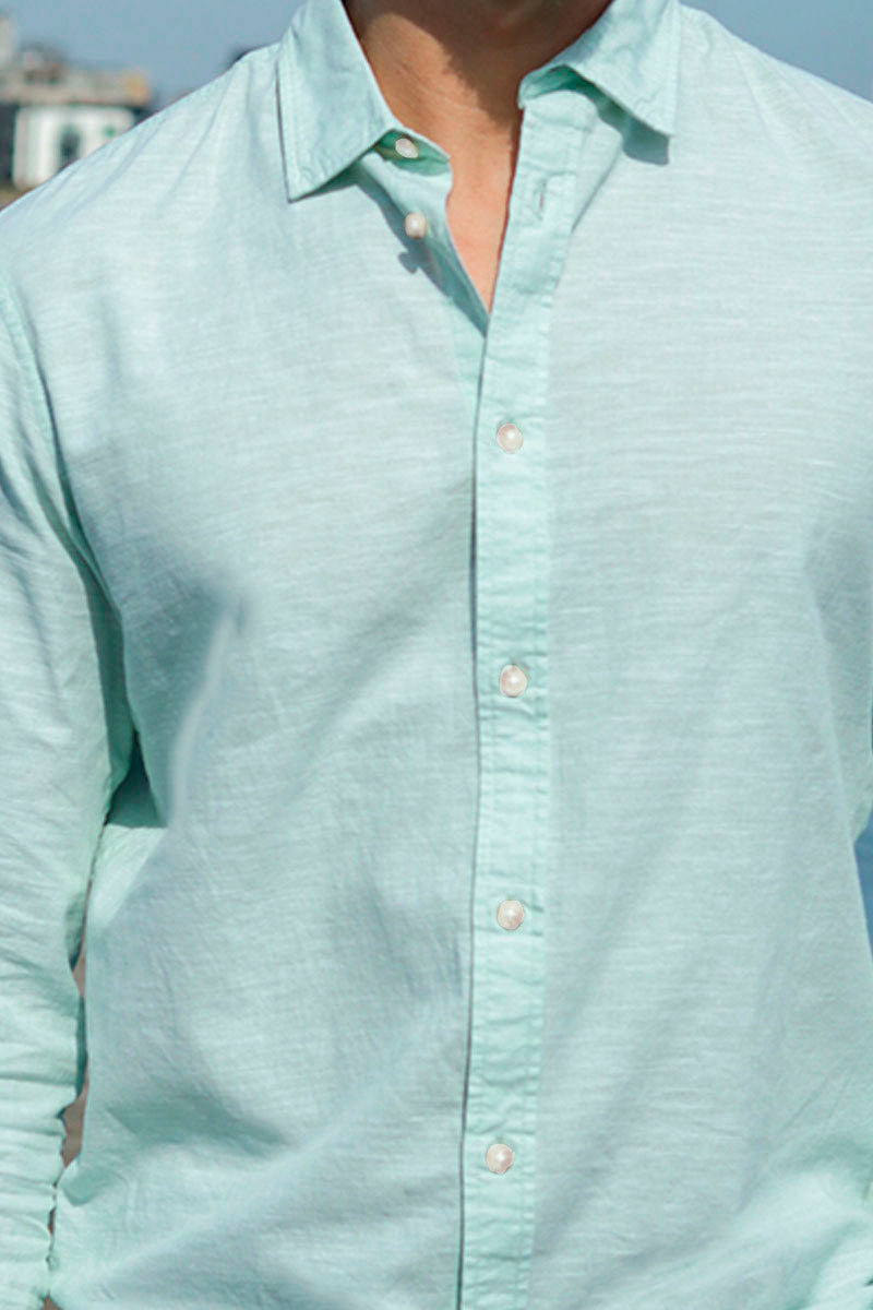 Slim Sun Linen Shirt LS Iceberg Green / White