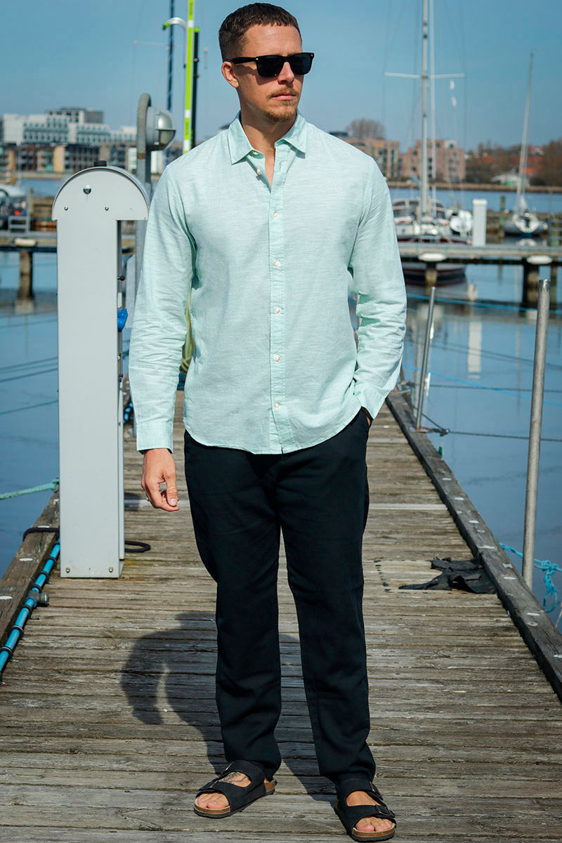 Selected Slim Sun Linen Shirt LS Iceberg Green / White