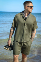 ONLY & SONS Kari Relaxed Cuba Shirt Viscose Linen Olive Night
