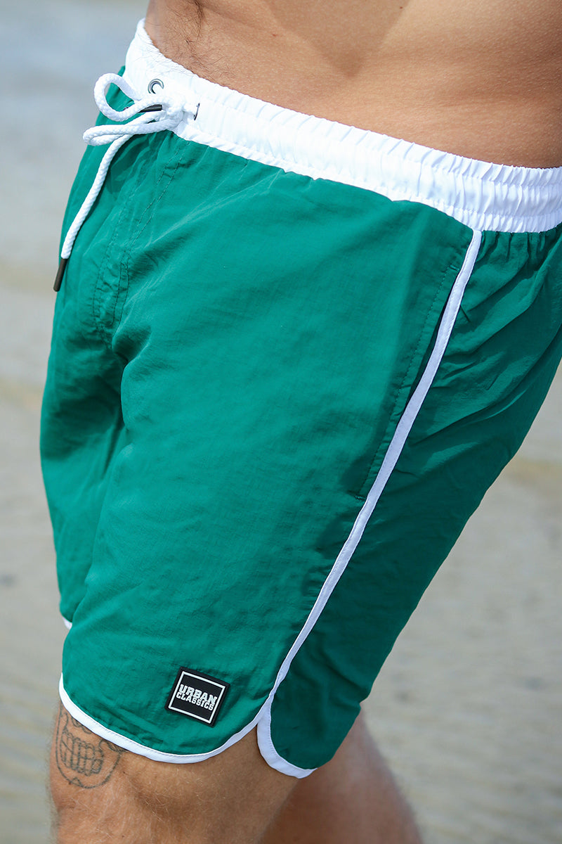 Another option is Hawaii shorts. These are typically characterized by being blue, red, yellow, or green. At the same time, they feature patterns of exotic palm trees or beautiful Hawaiian flowers. Such swim shorts are here to stay. They have always been fashionable and will always be. They are fun, summery, and perfect for both the pool and the beach.