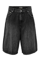 - Black denim shorts in a balloon fit.
