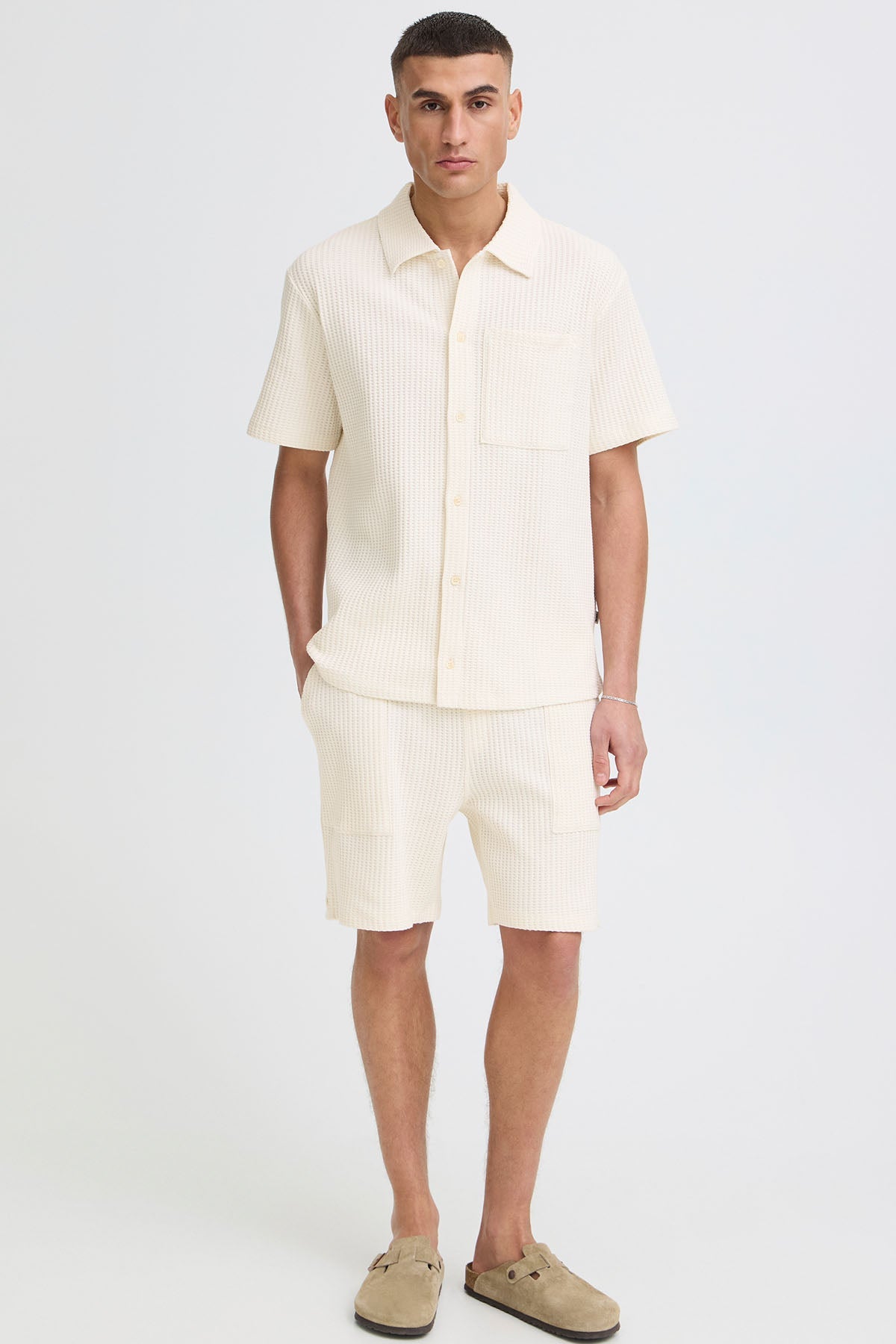 The Utley shorts in off white offer a comfortable fit ideal for casual wear. Crafted primarily from cotton with a touch of elastane, they provide both softness and a slight stretch for ease of movement. Designed for men, these shorts combine practicality with a clean, versatile style suitable for various settings.