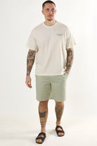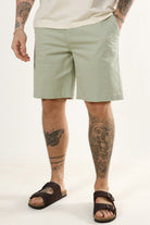 These twill shorts offer a comfortable fit made primarily from soft cotton with a hint of elastane for added stretch. Designed in a versatile desert sage color, they provide a breathable option perfect for the warmer spring and summer months. Their basket weave texture brings subtle detail to a classic silhouette, making them easy to pair with a variety of casual outfits.