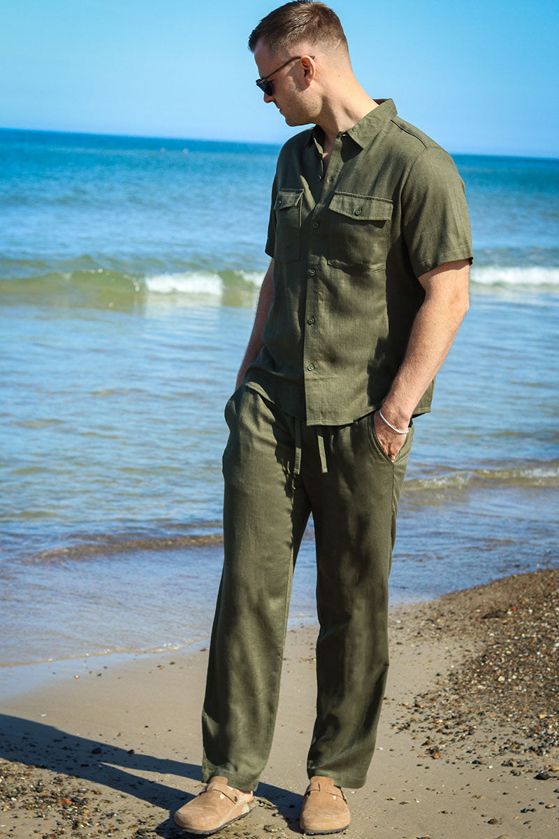 Caiden SS Linen Shirt Swamp