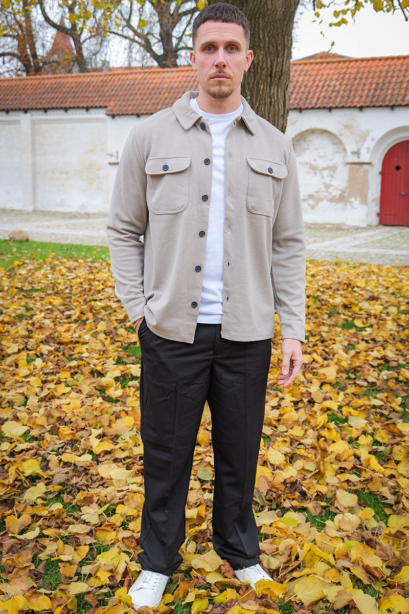 This regular fit overshirt features long sleeves and a classic shirt collar, providing a timeless look that pairs well with jeans or tailored trousers. Designed for everyday wear, work, and special occasions, it combines comfort with style through its button fastening and chest pockets with buttons. The vintage khaki color adds a subtle, versatile tone to your wardrobe.