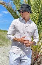 This shirt is versatile and can be dressed up or down depending on the occasion. The classic design and subtle stripes make it perfect for casual outings, while the high-quality linen fabric makes it suitable for more formal events. Pair it with chinos or jeans for a casual look or dress it up with tailored trousers and a blazer. The possibilities are endless with this stylish and comfortable linen shirt.