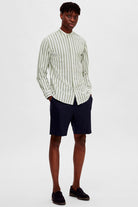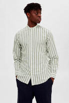 Selected SLHSLIMNEW-LINEN SHIRT LS BAND W Kelp Stripes