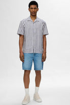 Selected Relax New Linen Shirt SS Resort Sky Captain Stripe