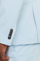 The Comfort Suit in Chambray Blue is an elegant addition to your wardrobe, offering a fresh alternative to traditional colors. This shade can be styled for both formal and casual occasions. -