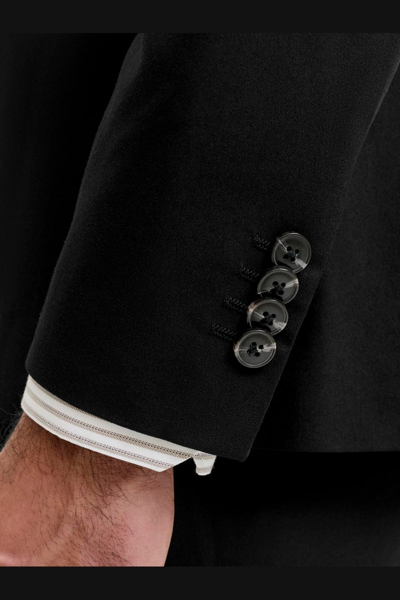 2. Fit: Pick a suit that fits your body, and let the sleeve stop at your wrist.