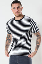 Basic Brand T-shirt Striped Oxford Grey/Heather Blue