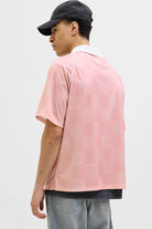 - Light pink short-sleeved polo with checkered pattern in a loose fit