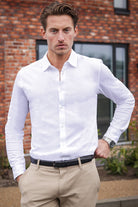 The Comfort Shirt in White is a stylish and comfortable slim-fitting shirt that is perfect for any formal or casual occasion. The shirt is designed with a classic collar and button closure, which gives it a sophisticated look. The shirt also has plenty of stretch, ensuring a good fit and comfort.