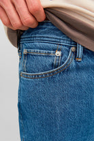 Alex jeans come with discreet Jack & Jones embroidery on the back pockets and a classic button closure. The embroidery adds a subtle detail of style to the jeans, while the button closure ensures a secure and timeless fastening.