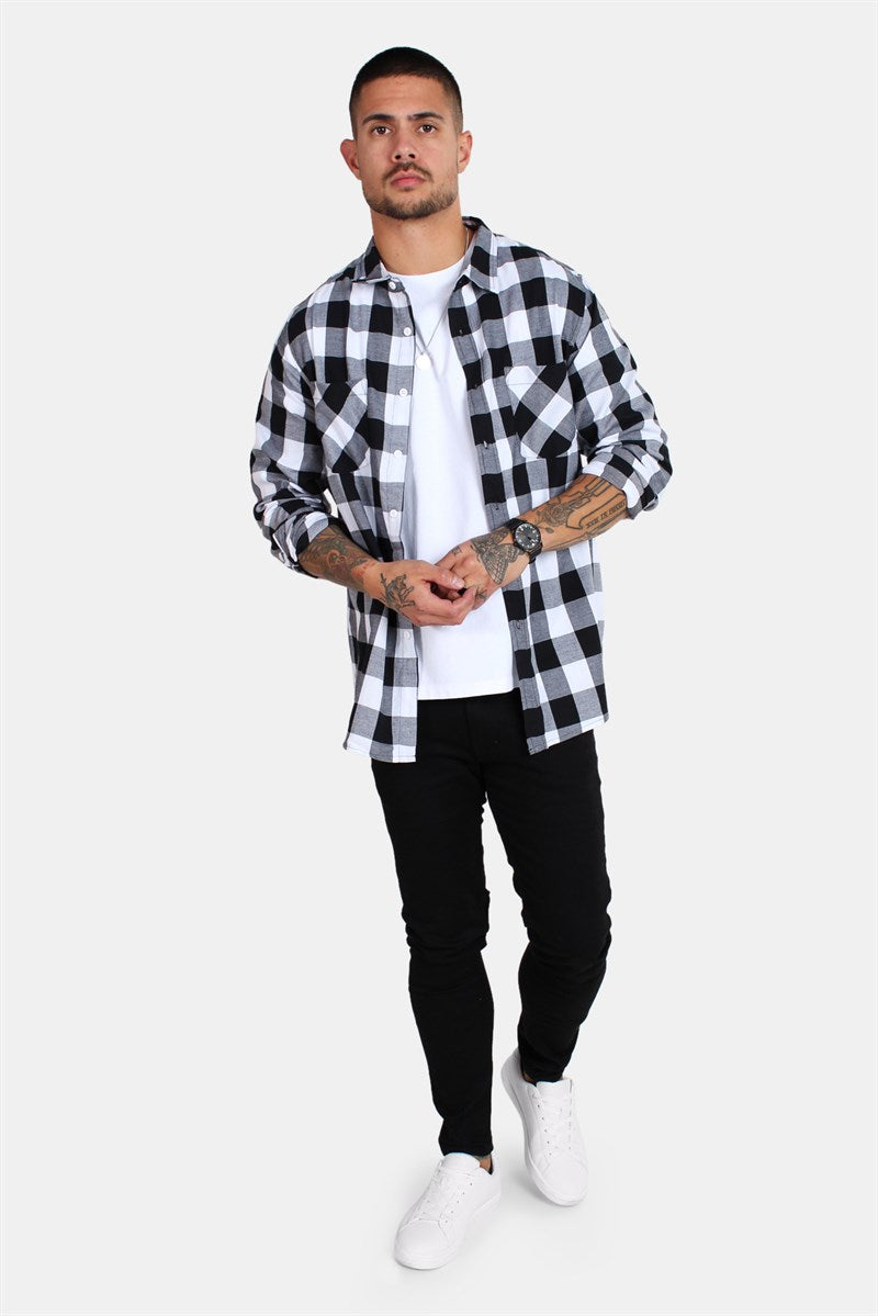 Strong, soft, checkered, quality shirt featuring two chest pockets. 100% cotton Model: Tb297 Black/White