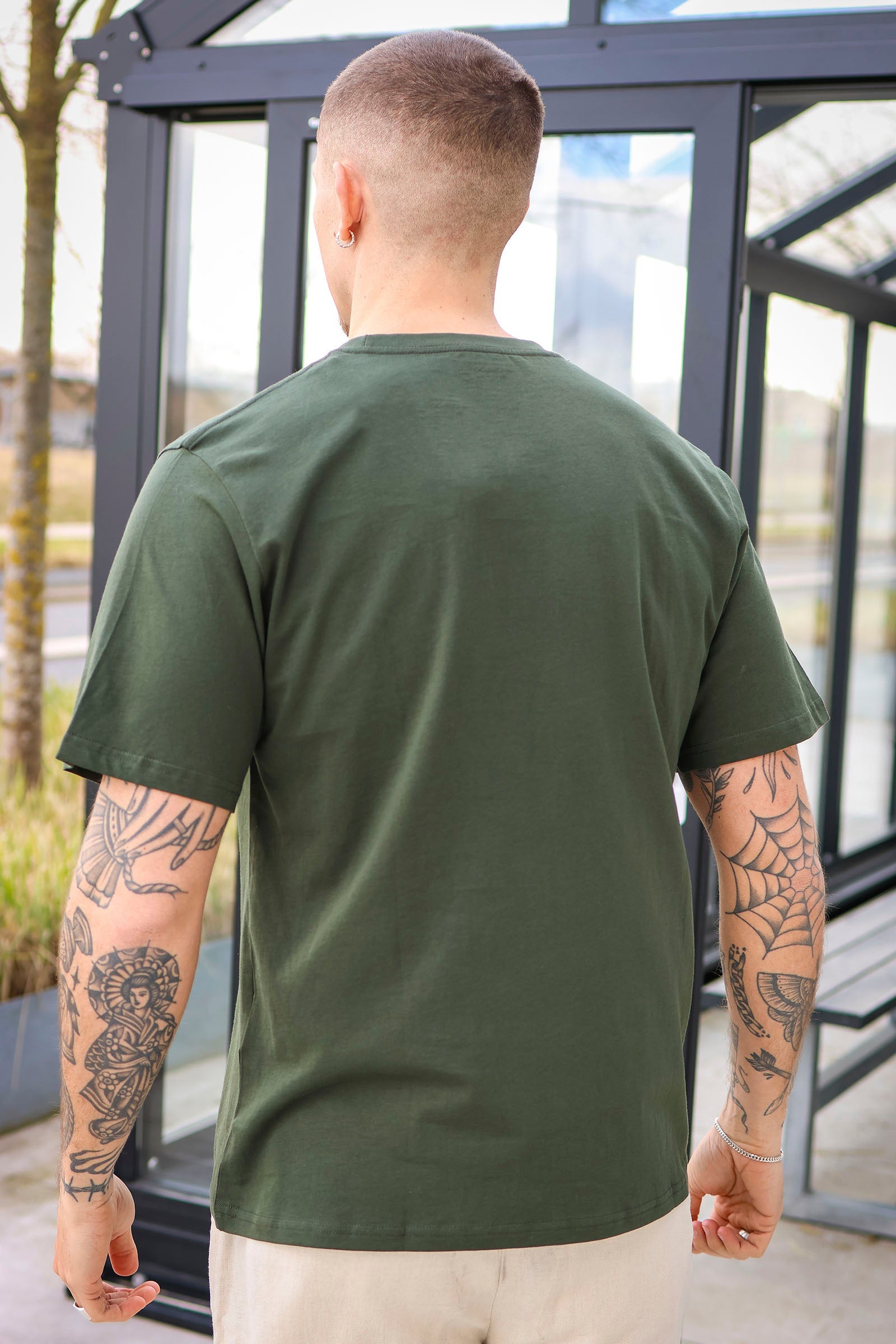 This basic Tee is a closet essential that works well with jeans, shorts, and pants. Made from organic cotton, it offers a soft and breathable feel, perfect for comfortable everyday wear. The relaxed fit combined with short set-in sleeves and a classic crew neck makes it an easy choice for any casual outfit. It features a print placed on the front, adding subtle detail to the traditional style.