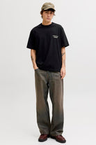 This loose fit crew neck tee is made from a lightweight and stretchy jersey fabric that ensures comfort throughout the day. Its short set-in sleeves and print details on the front and back make it a versatile piece that can easily be paired with many outfits. The main material features a sustainable blend that includes cotton in the process of being converted to organic, regular cotton, and recycled cotton, reflecting a commitment to eco-friendly materials.