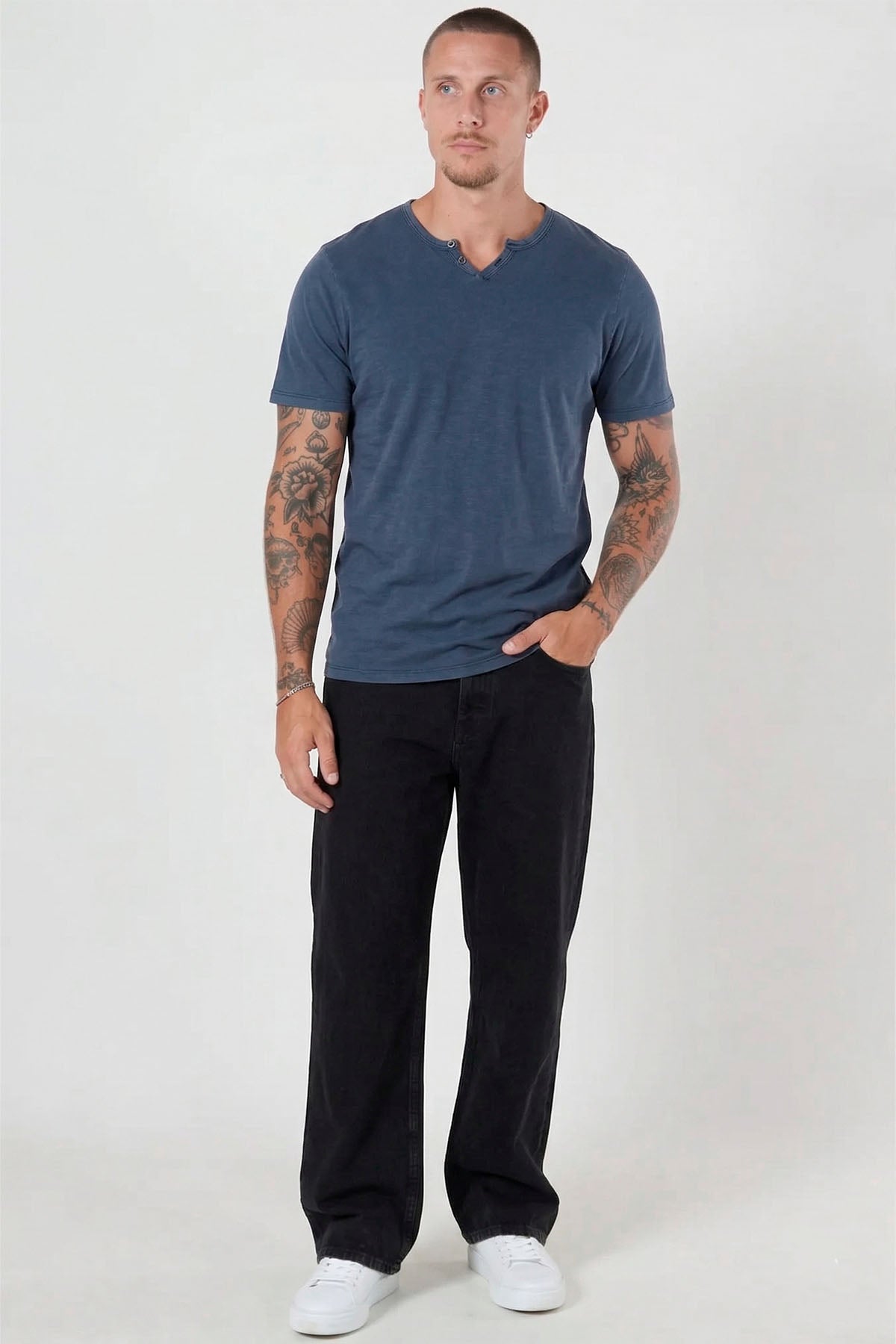 Split Neck Tee SS Navy Blazer