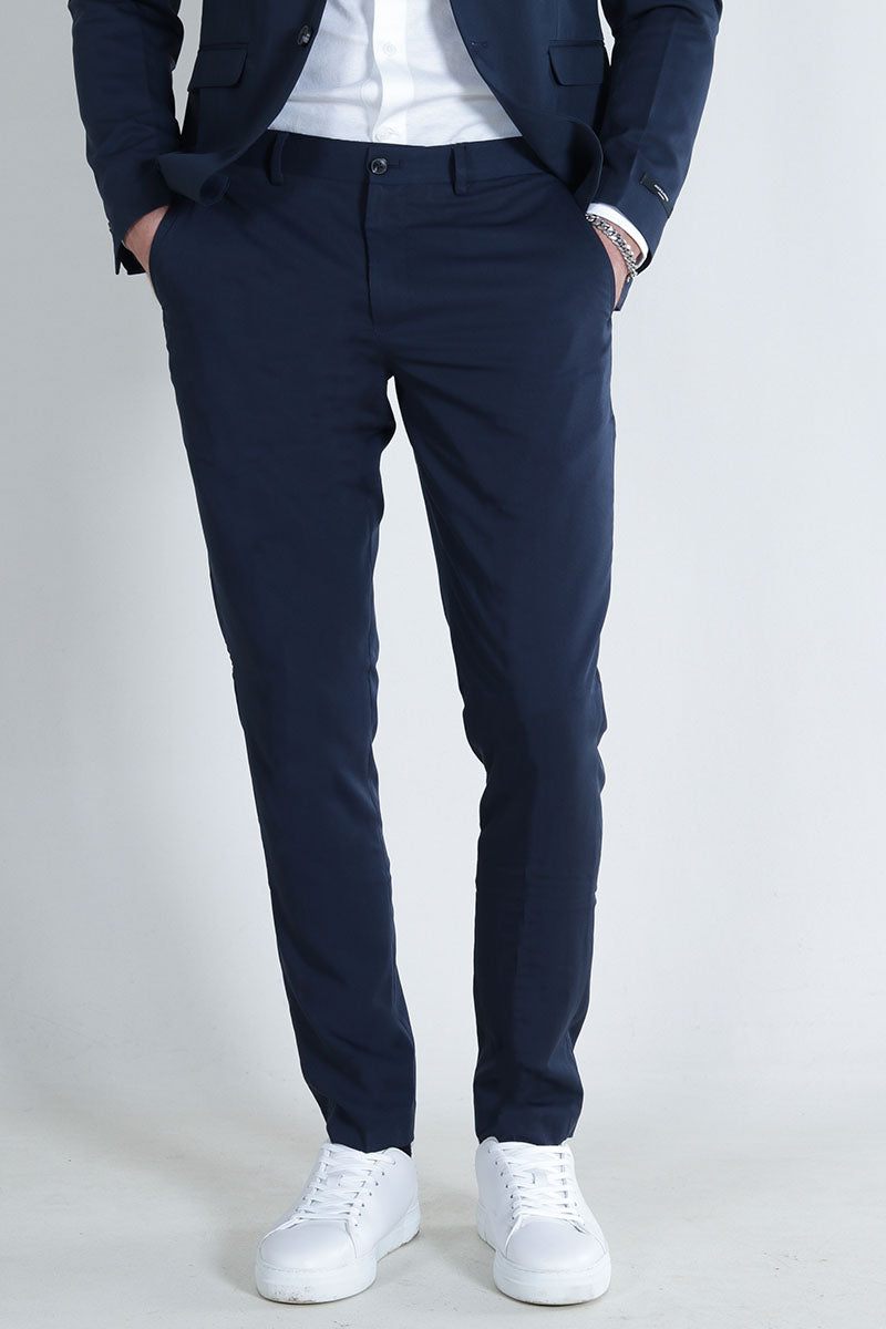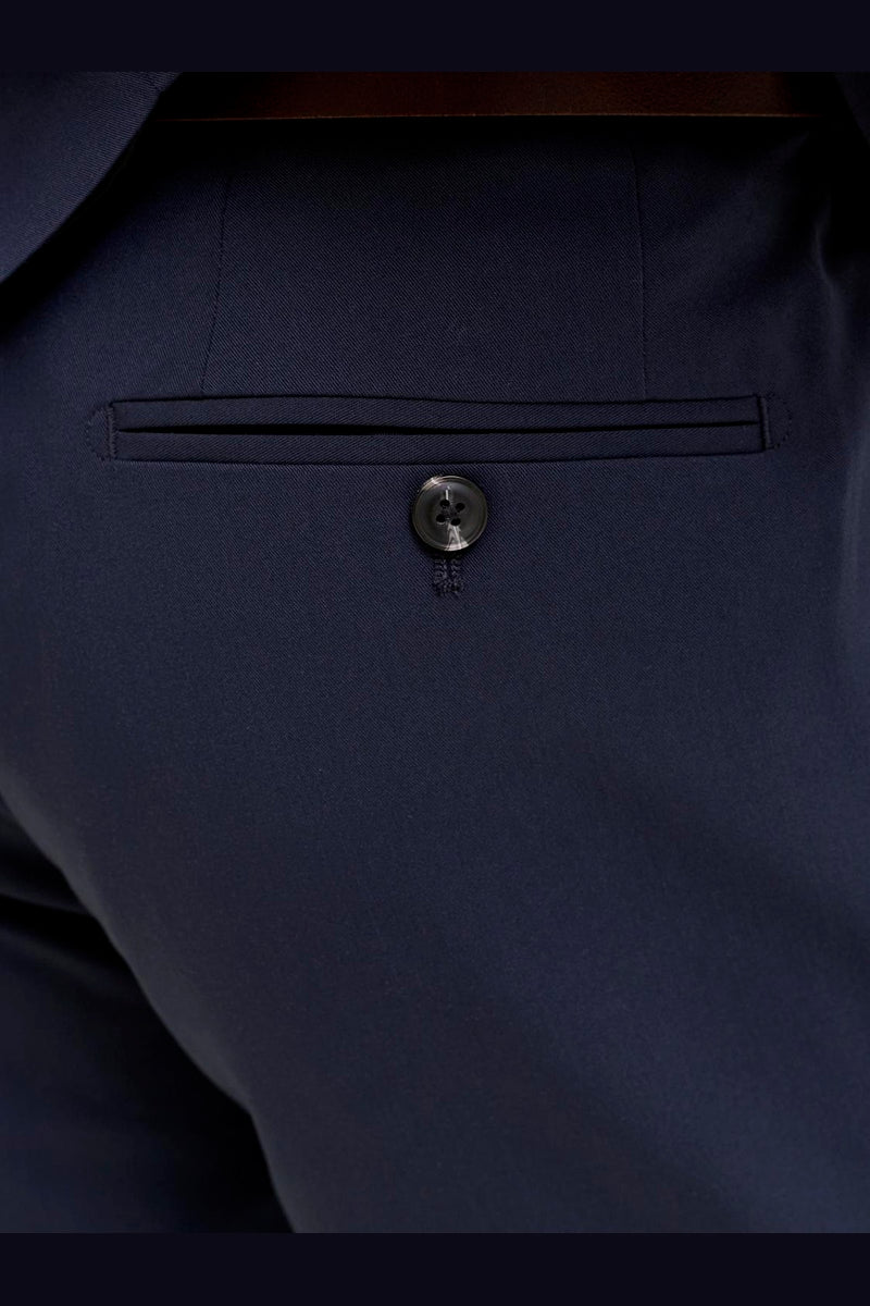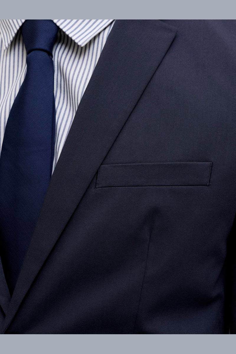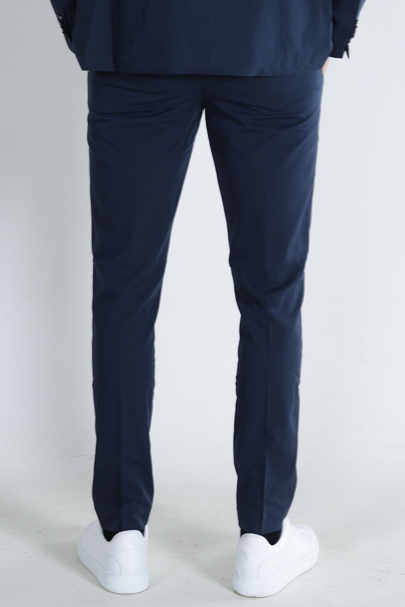 The Comfort Suit in Dark Navy is designed with both comfort and style in mind. The suit is made of a blend of polyester, viscose, and elastane, which provides a comfortable and stretchy fit. The added elastane in the material gives the suit more flexibility and ensures that it moves with your body, providing freedom of movement and comfort. -