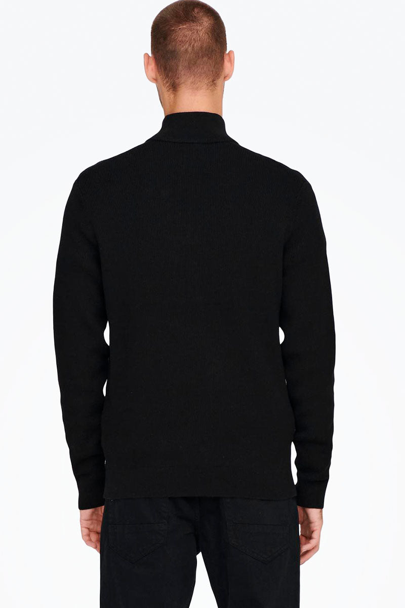 ONLY & SONS PHIL COTTON HALF ZIP KNIT Black