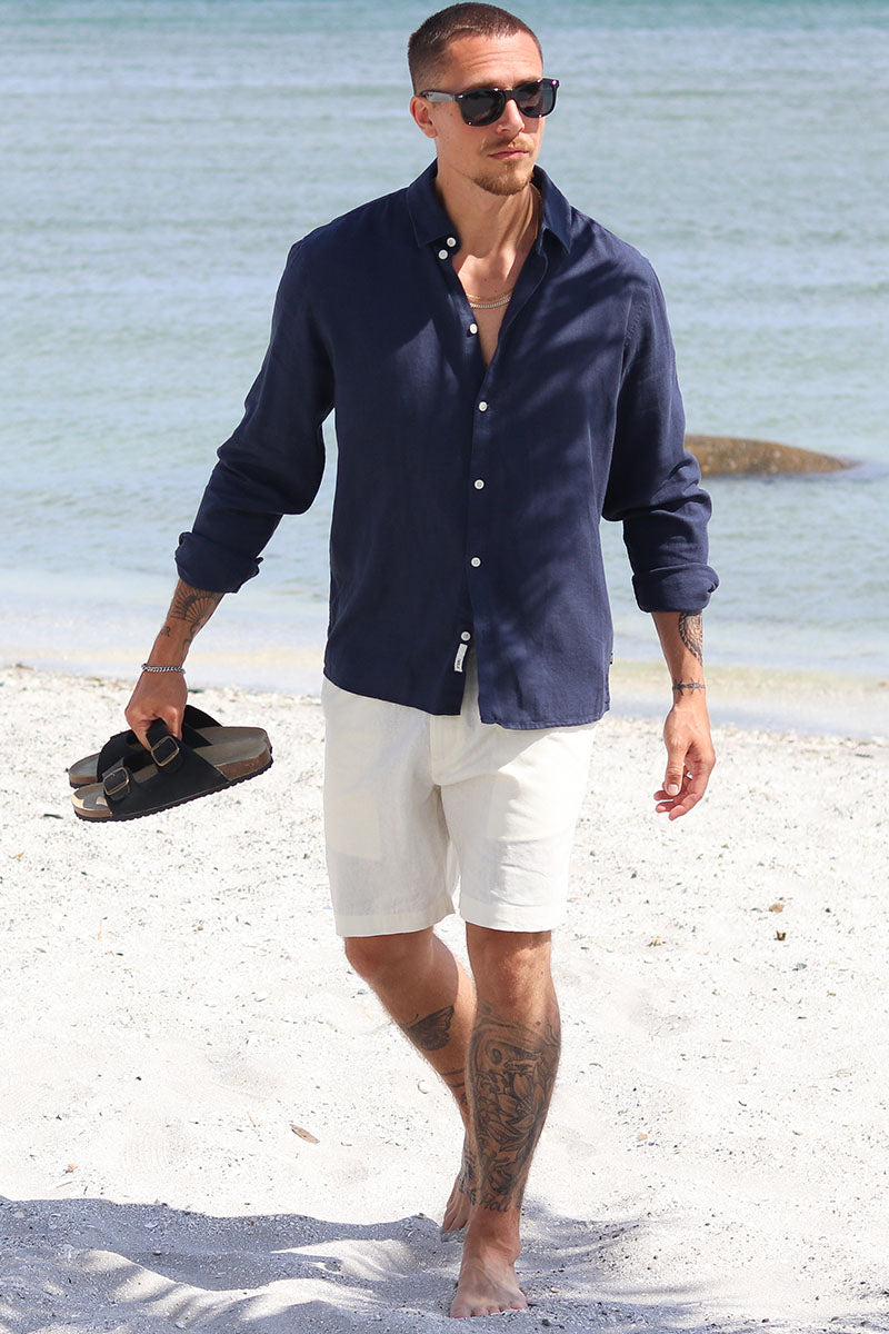 Solid Enea Allan Linen Shirt LS Insignia Blue