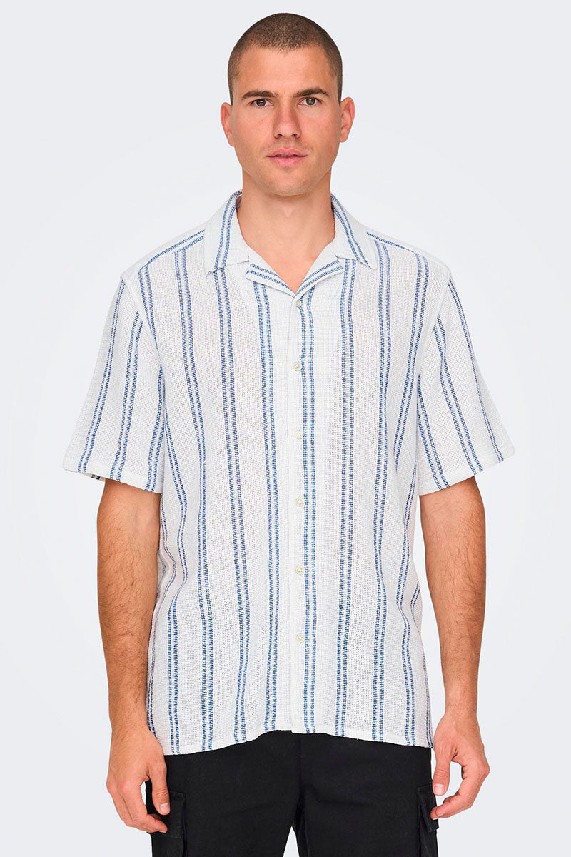 ONLY & SONS Trev Reg Structure Stripe SS Shirt Cloud Dancer