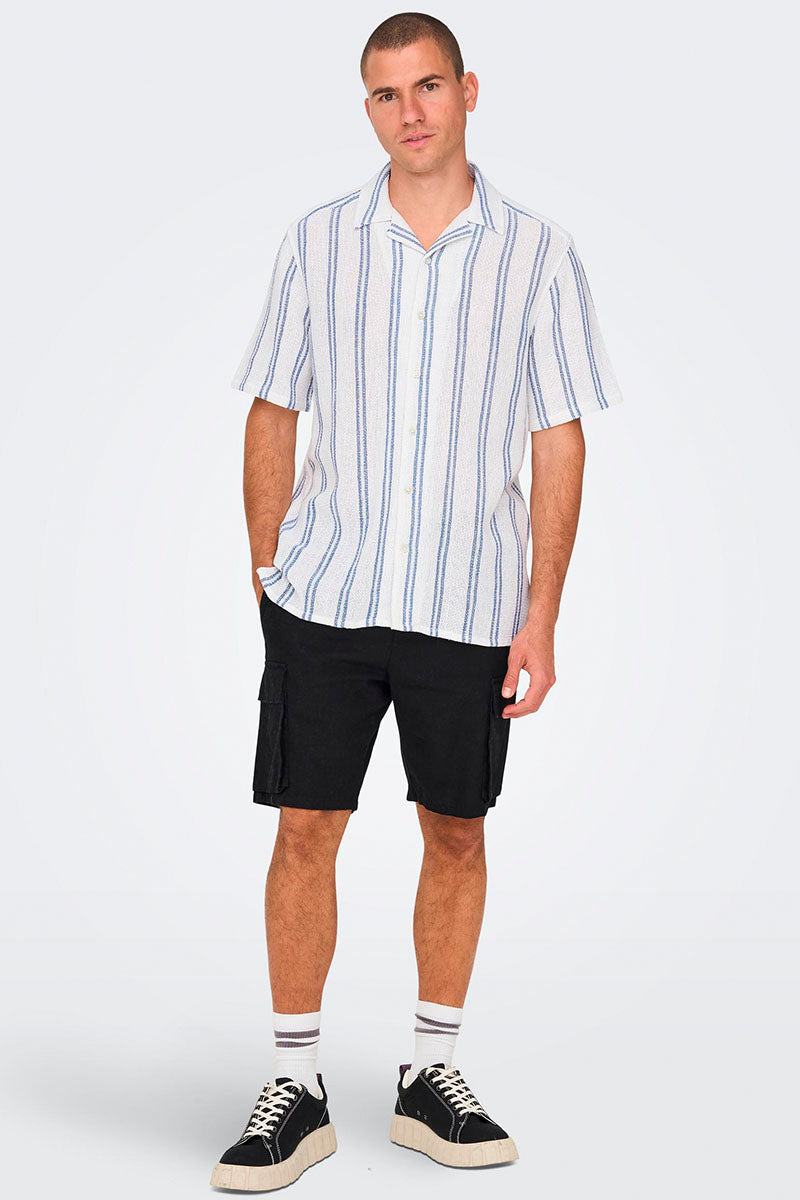 ONLY & SONS Trev Reg Structure Stripe SS Shirt Dark Navy