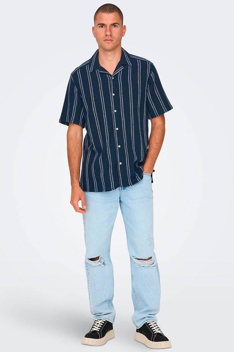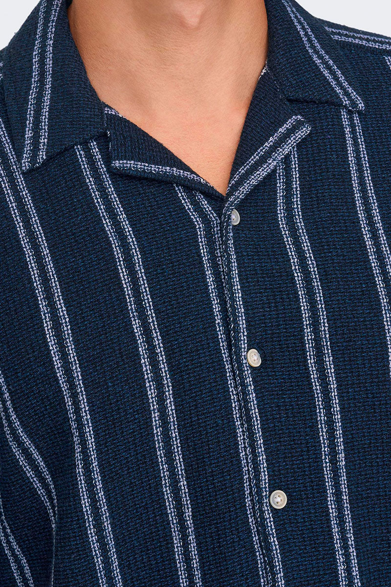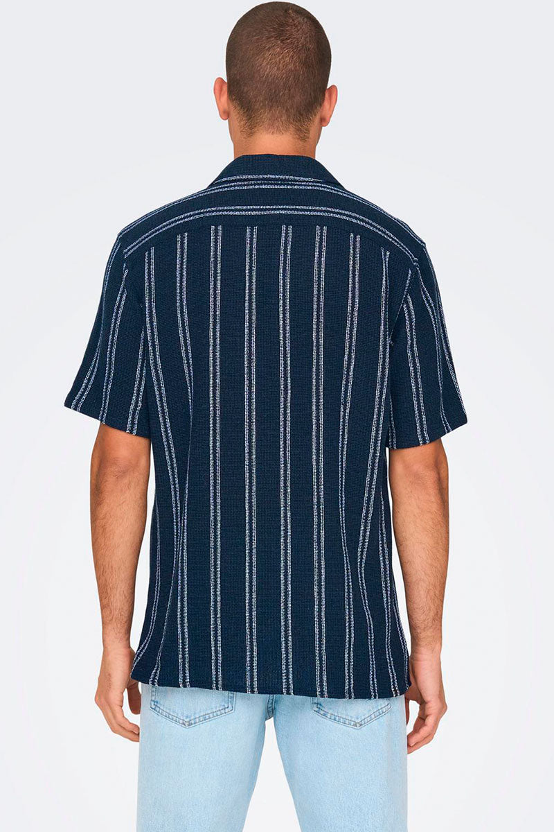 ONLY & SONS Trev Reg Structure Stripe SS Shirt Dark Navy