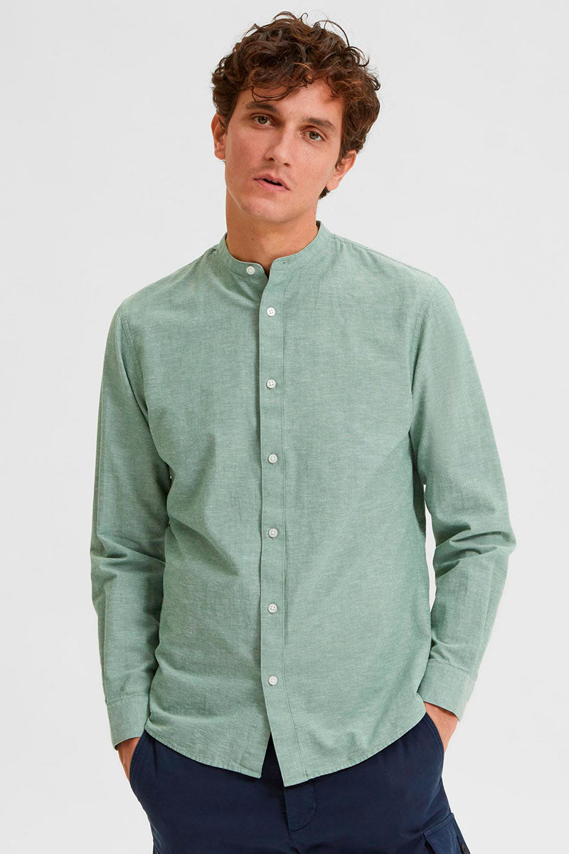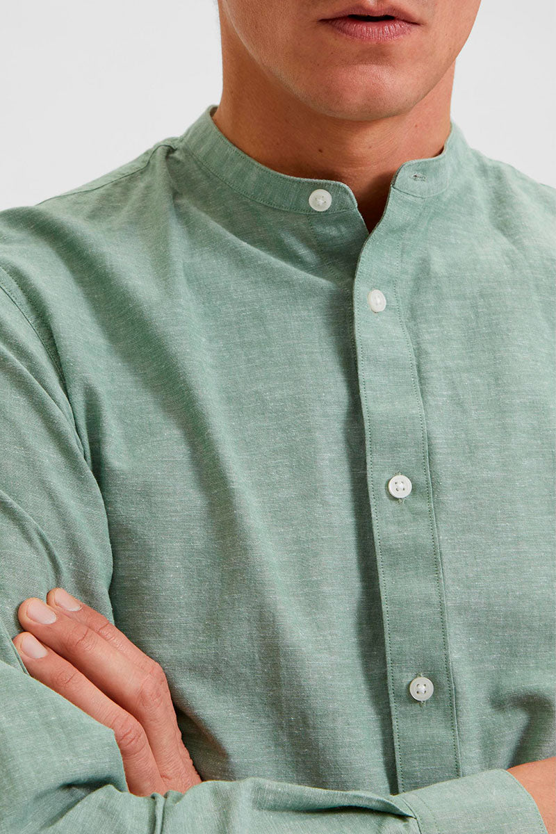 SLHSLIMNEW-LINEN SHIRT LS BAND W Desert Sage