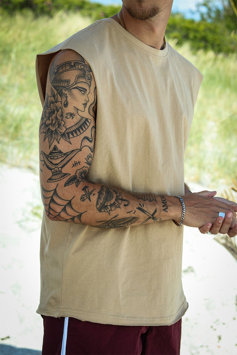 Urban Classics Open Edge Sleeveless Tee Union Beige