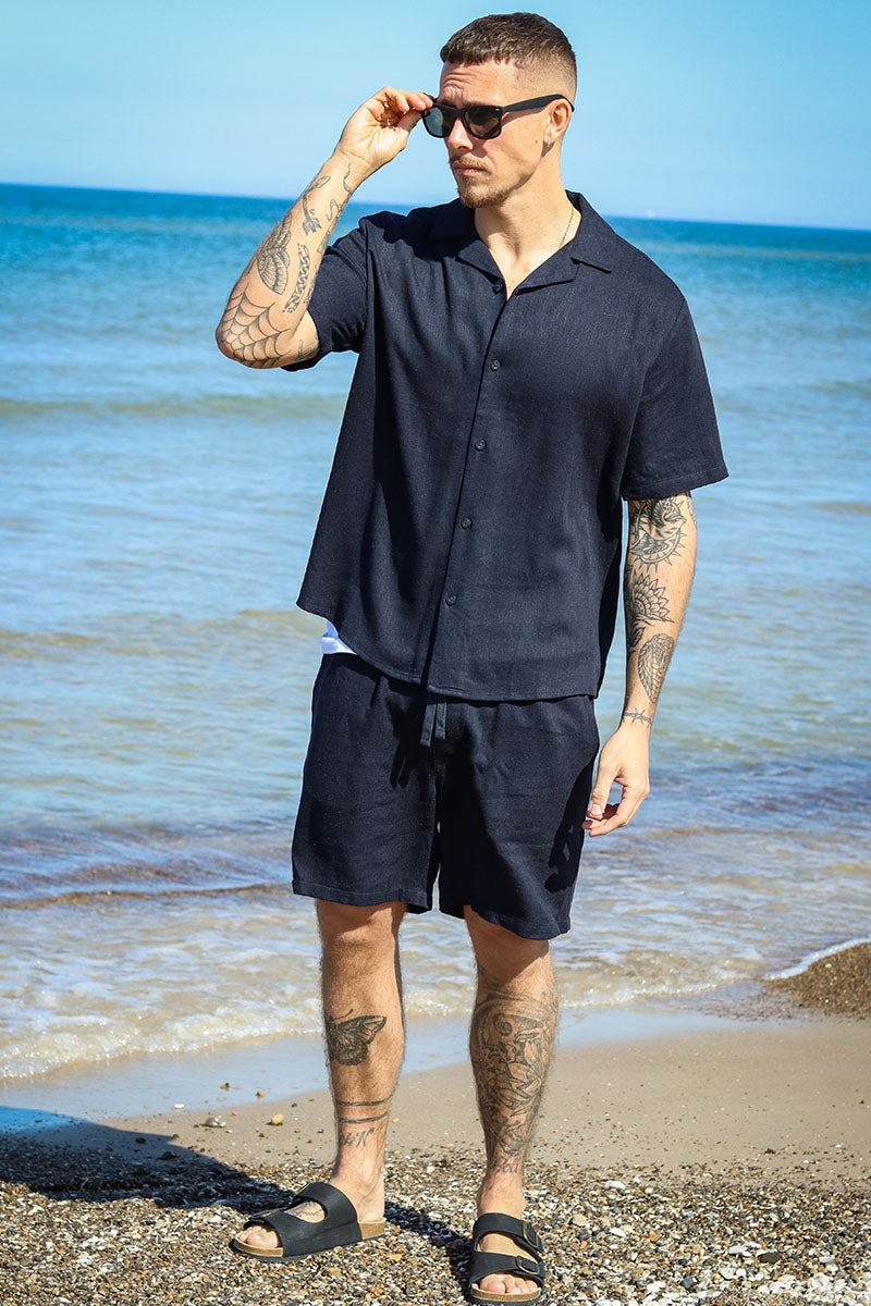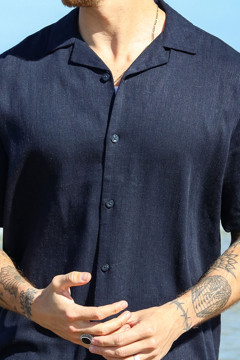 ONLY & SONS Kari Relaxed Cuba Shirt Viscose Linen Dark Navy