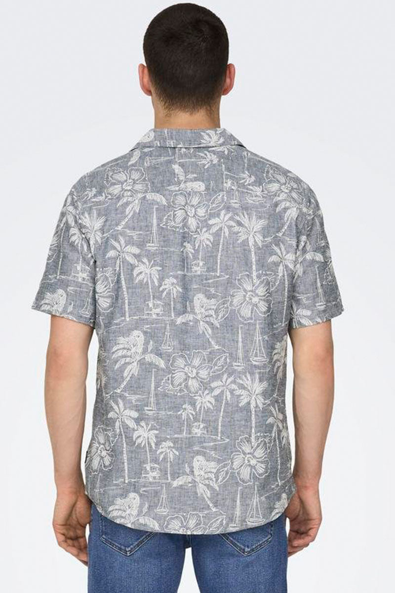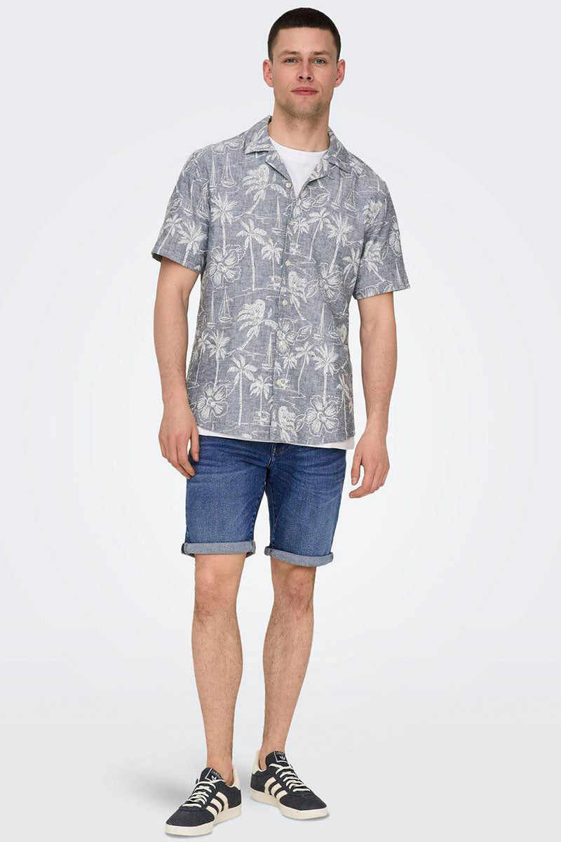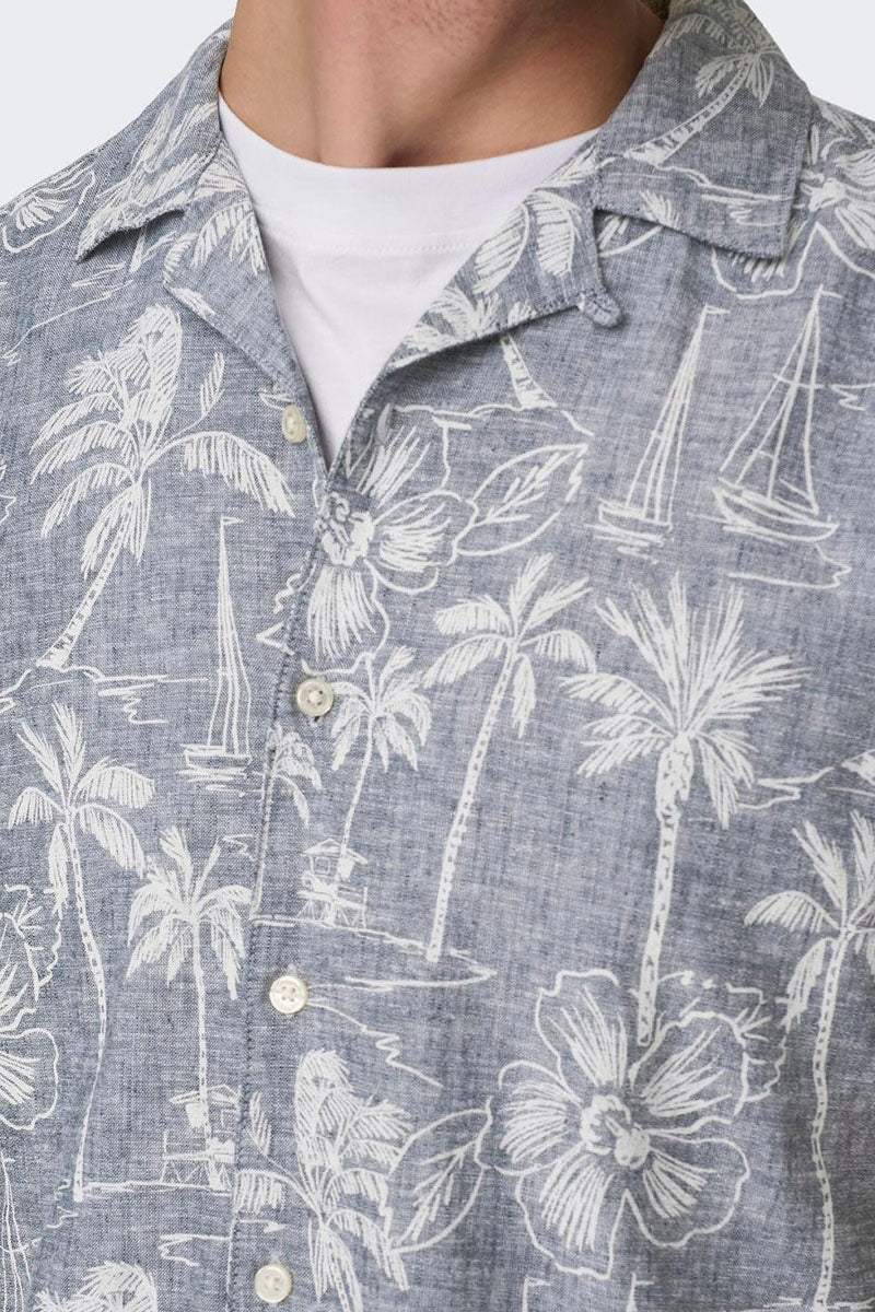 Caiden SS Regular Hawaii Linen Shirt Dress Blues
