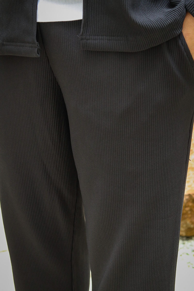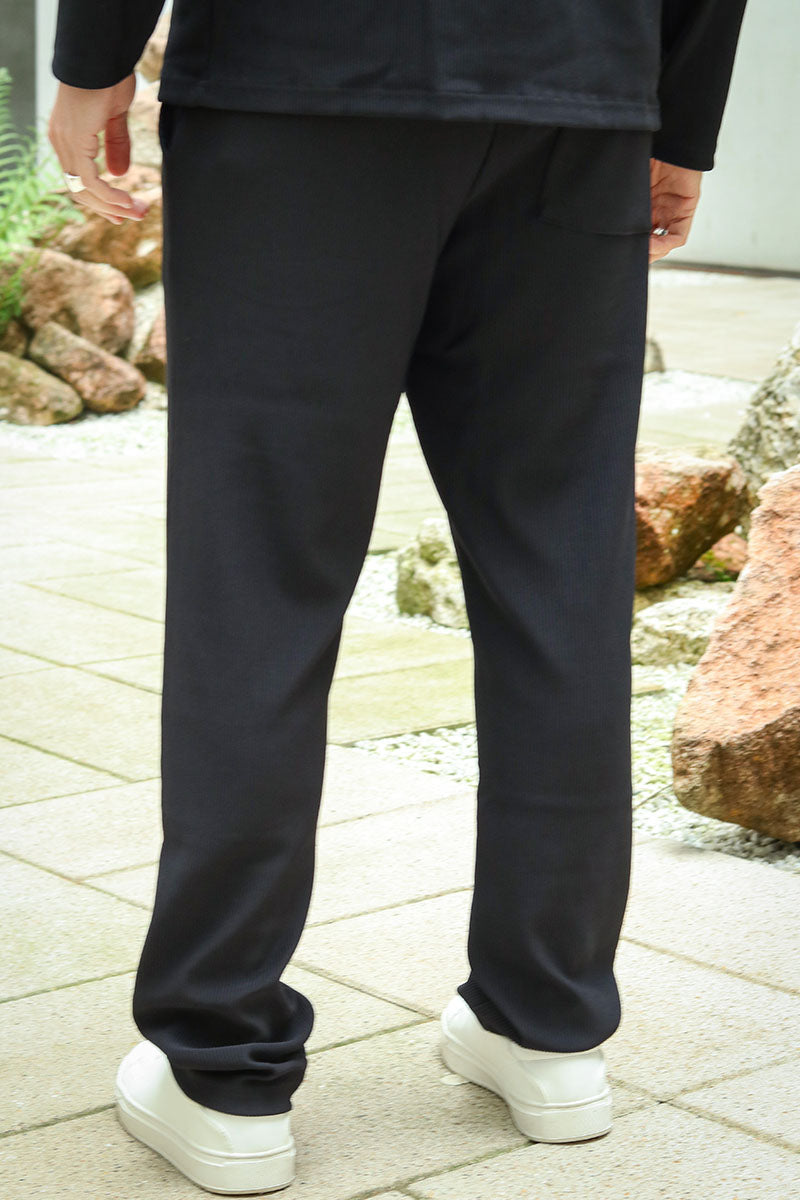 Straight Plisse Trousers Black