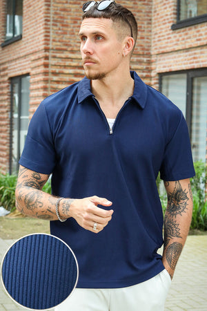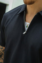 Selected Relax Plisse Half Zip SS Polo Black Iris