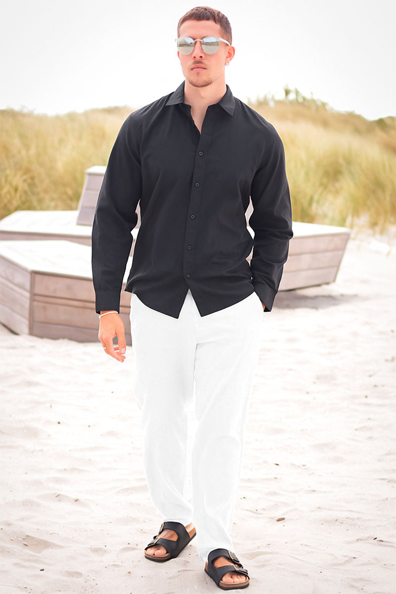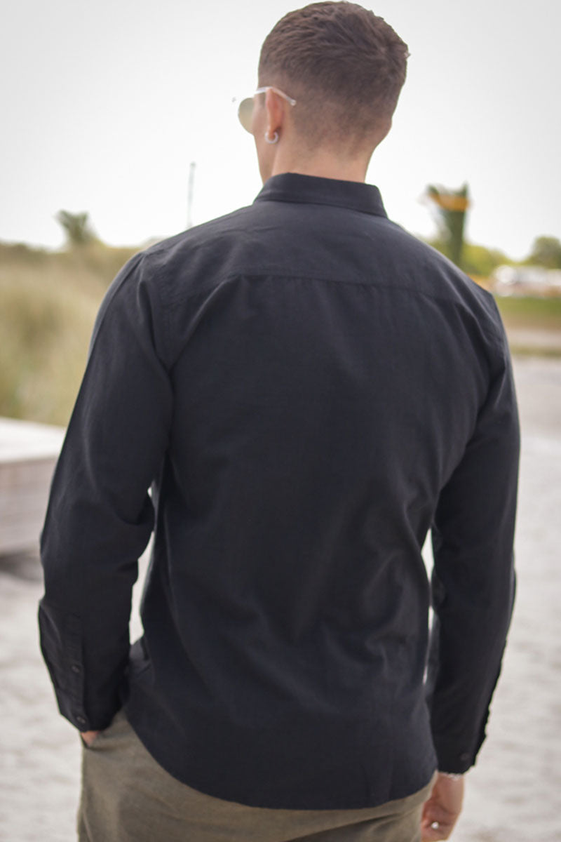 Slim Sun Linen Shirt LS Black