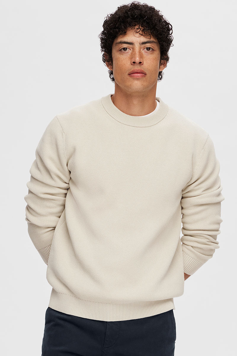 Selected Dane LS Structure Knit Crew Neck Greige