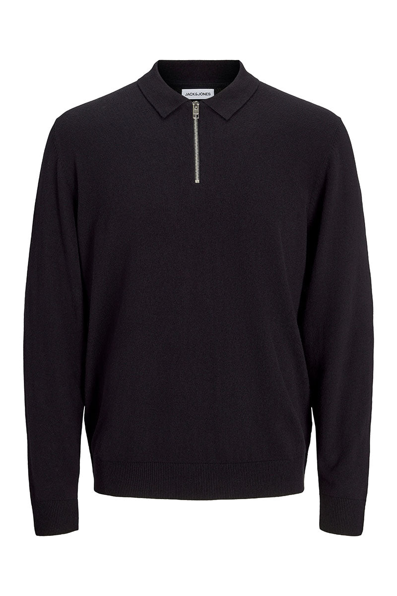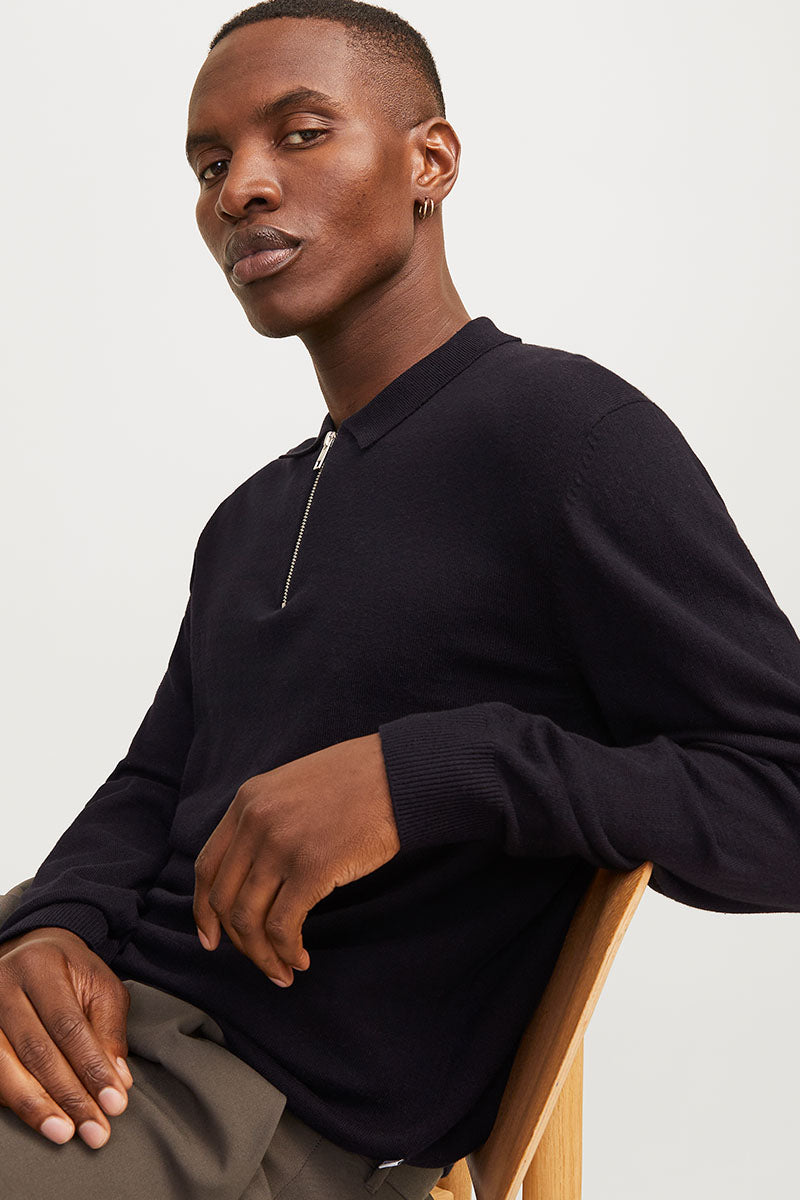 Emil Knit Polo Half Zip LS Black
