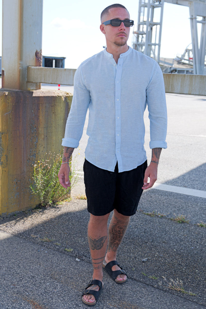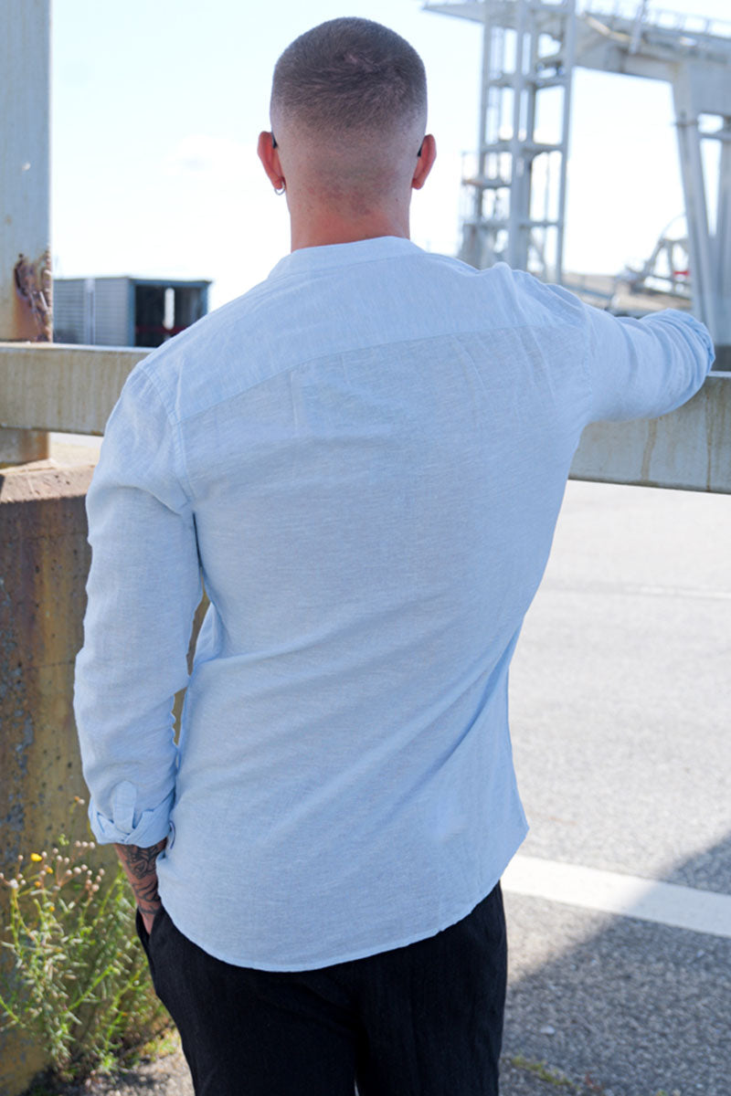 Caiden LS Linen Mao Shirt Cashmere Blue
