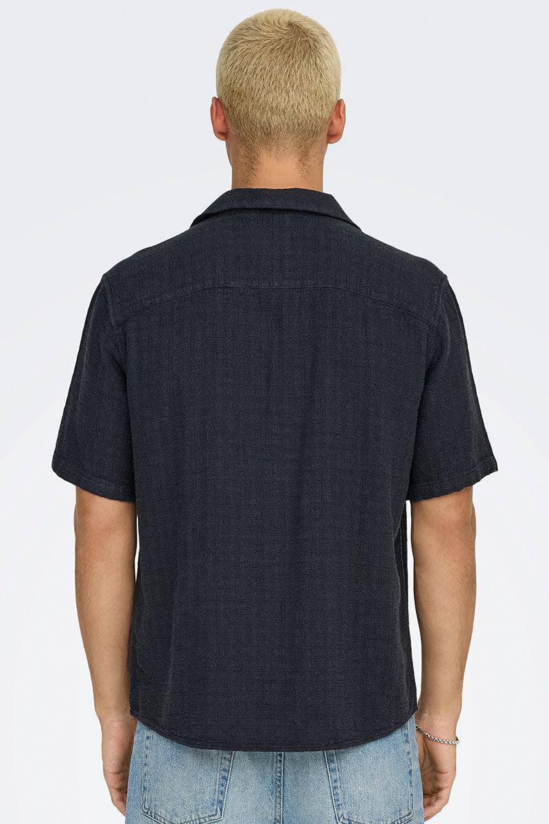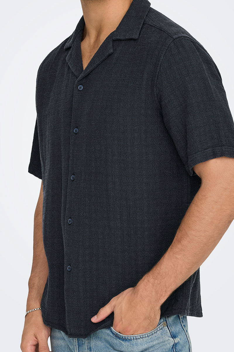 ONLY & SONS Latham Resort Linen Structure Shirt Dark Navy