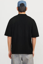 - Features a classic polo collar, buttons, and dropped shoulder seams