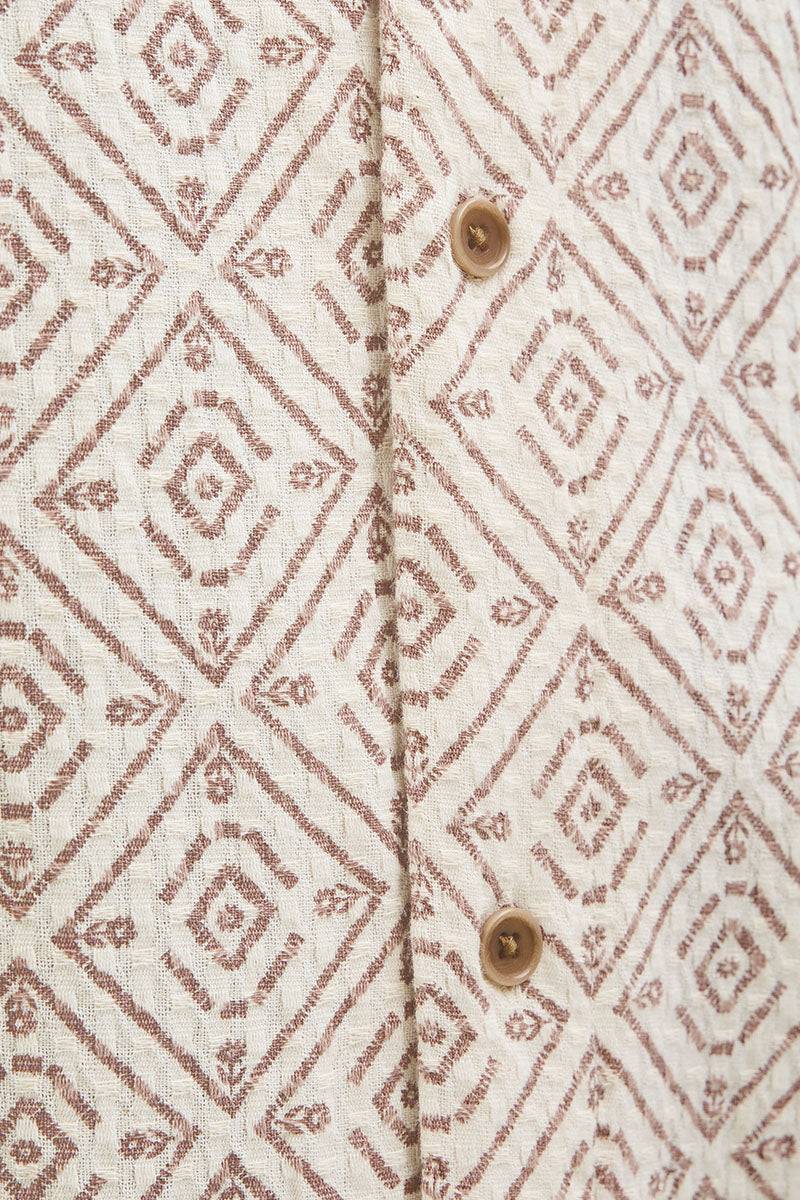 • Short-sleeved shirt with small geometric patterns.